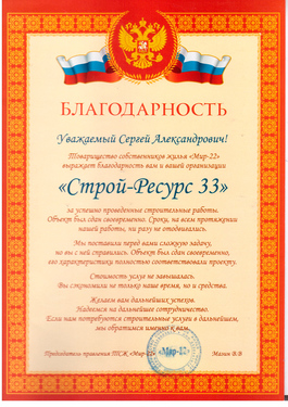 Предлагаем Вам рассмотреть возможность привлечения нашей организации для выполнения ремонтно-строительных работ на Ваших объектах.