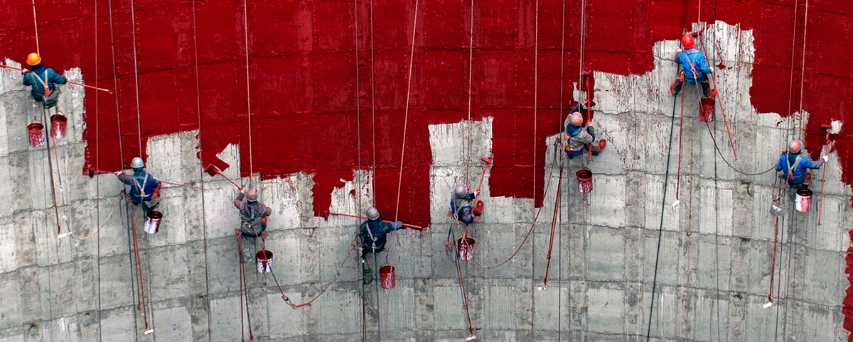 Покраска дымоходов производится на значительной высоте. Эта работа выполняется вручную несколькими промышленными альпинистами. Она занимает примерно 10 дней, время зависит от величины трубы. Эти специалисты имеют следующие возможности: